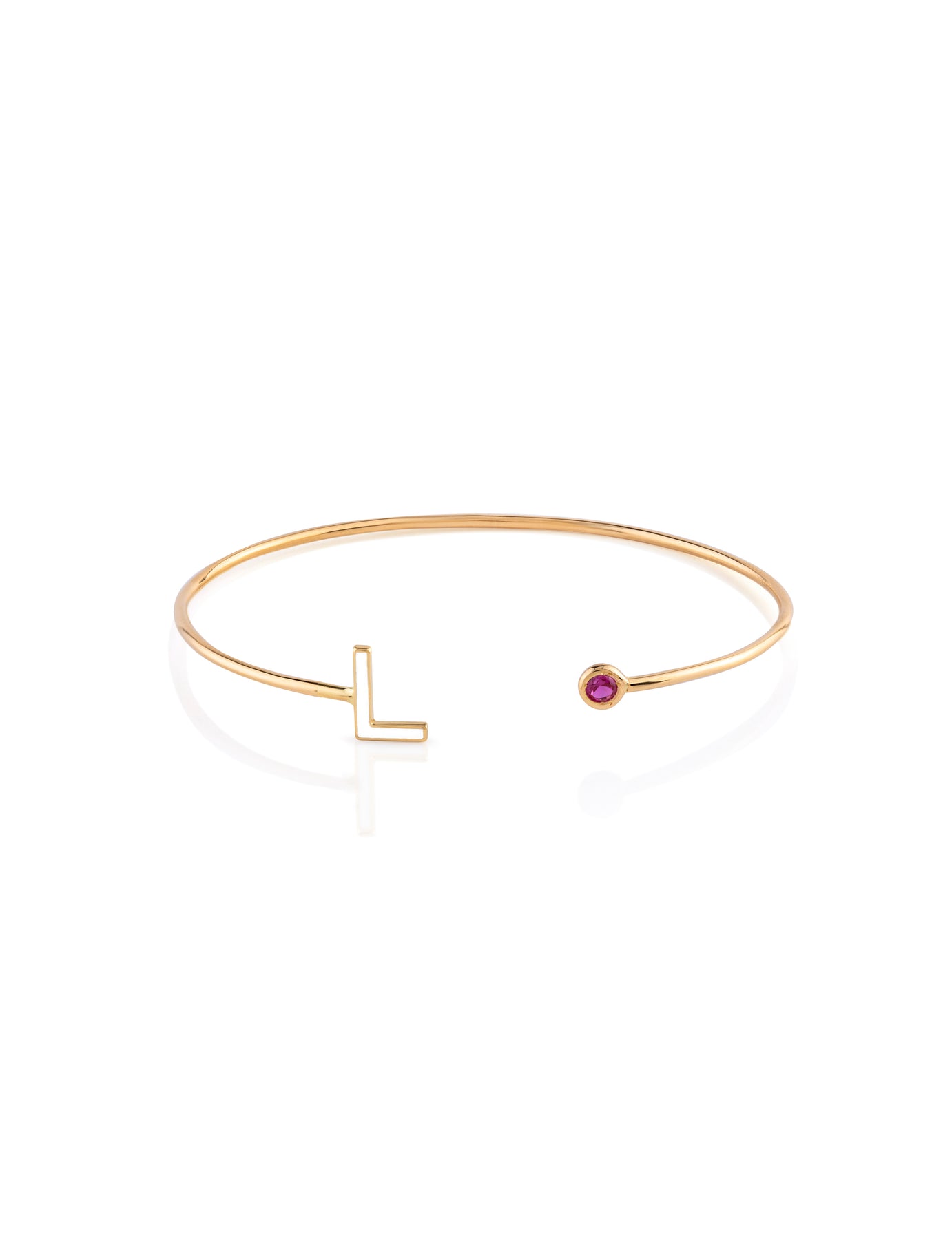 18K Gold Enamel Initial Open Bangle Bracelet