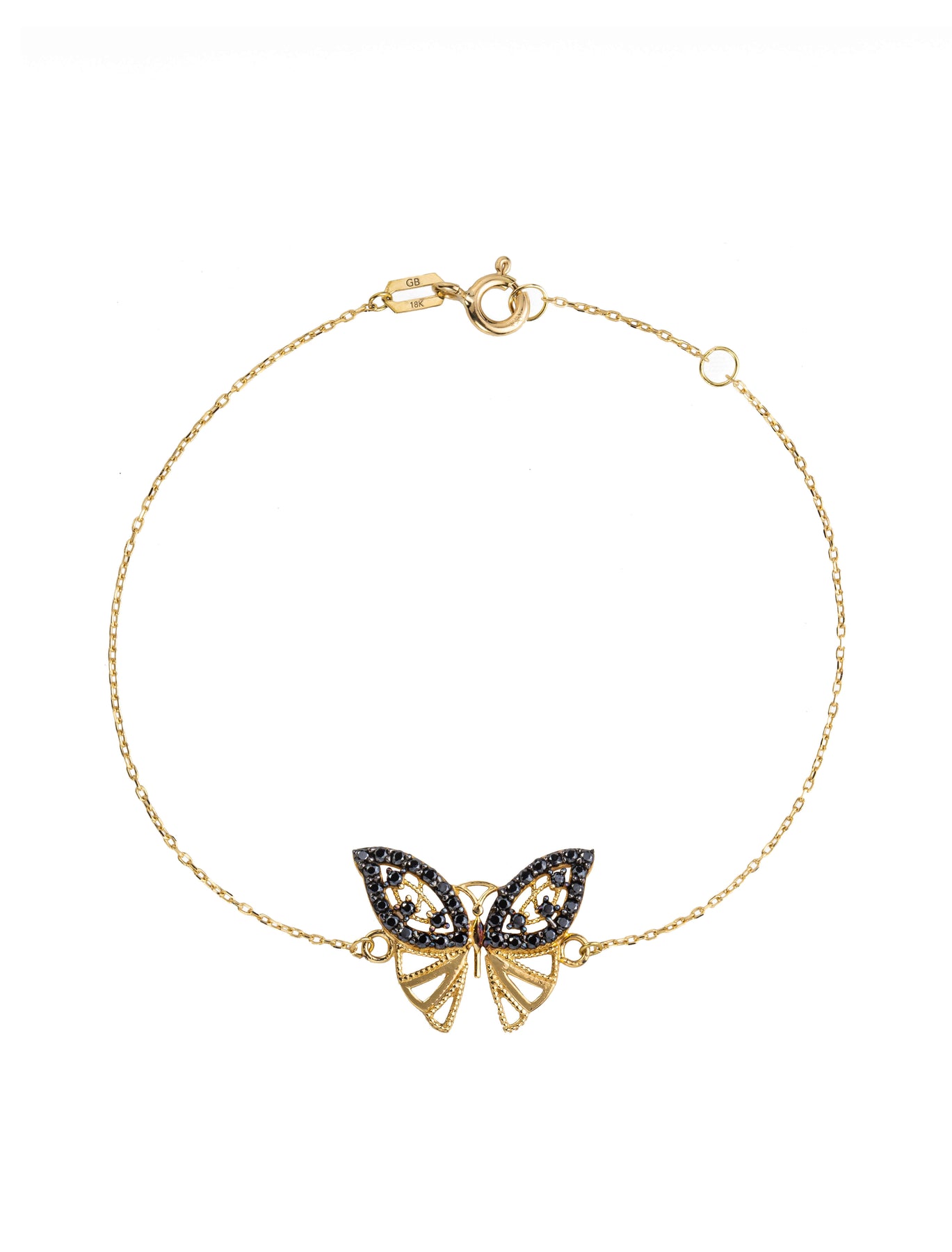 Bring spark and joy to your wrist with this 18k gold bracelet, featuring a butterfly adorned with zircon gemstones. Pair it with its necklace for a stunning matchy look (Size: 18 cm, adjustable to 16.5 cm)