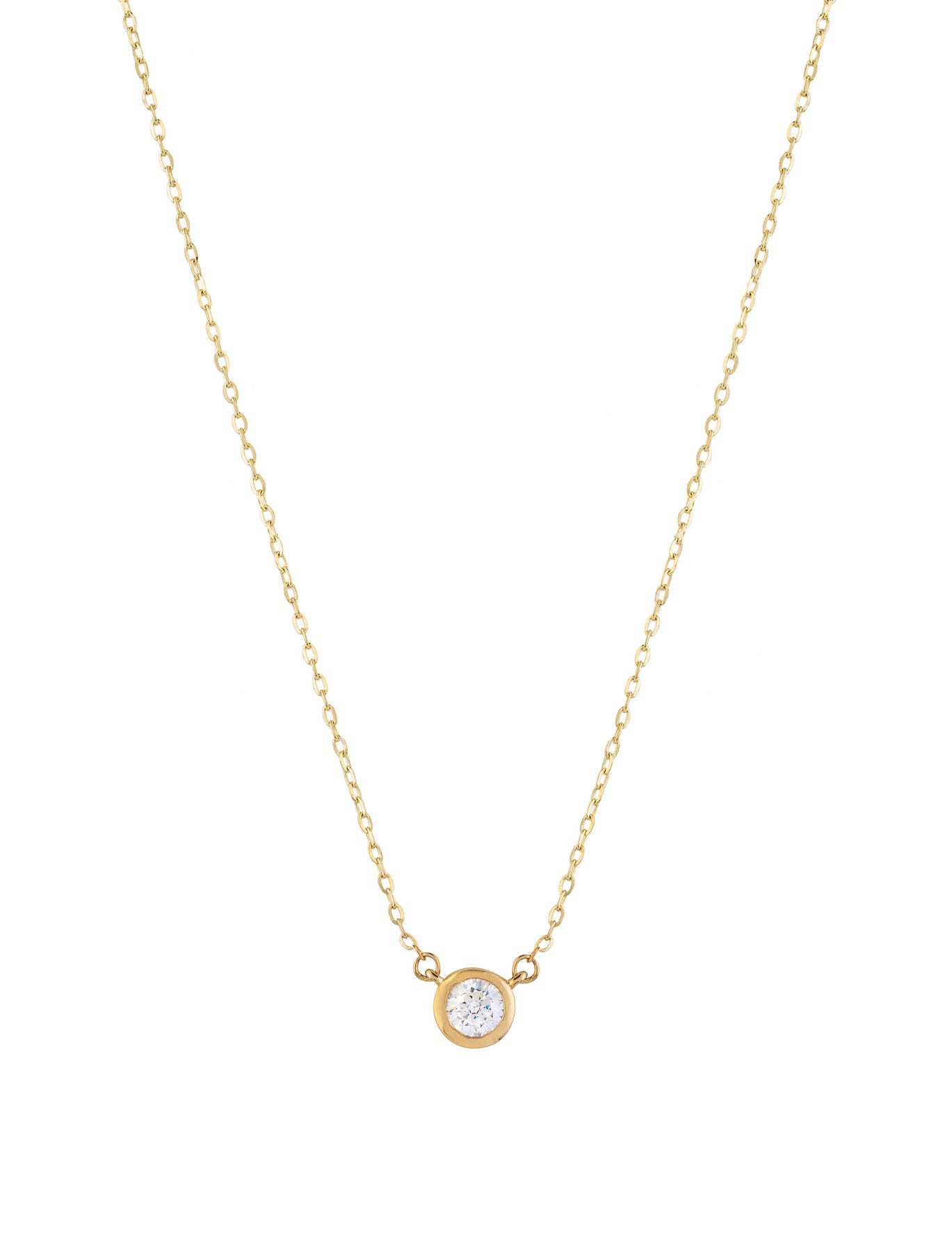 A brilliant round-cut gemstone sits securely in a bezel setting on this 18K gold necklace featuring a delicate cable chain. Add this timeless piece to your jewelry collection and match it with any look (Size: 40 cm, adjustable to 38.5 cm)