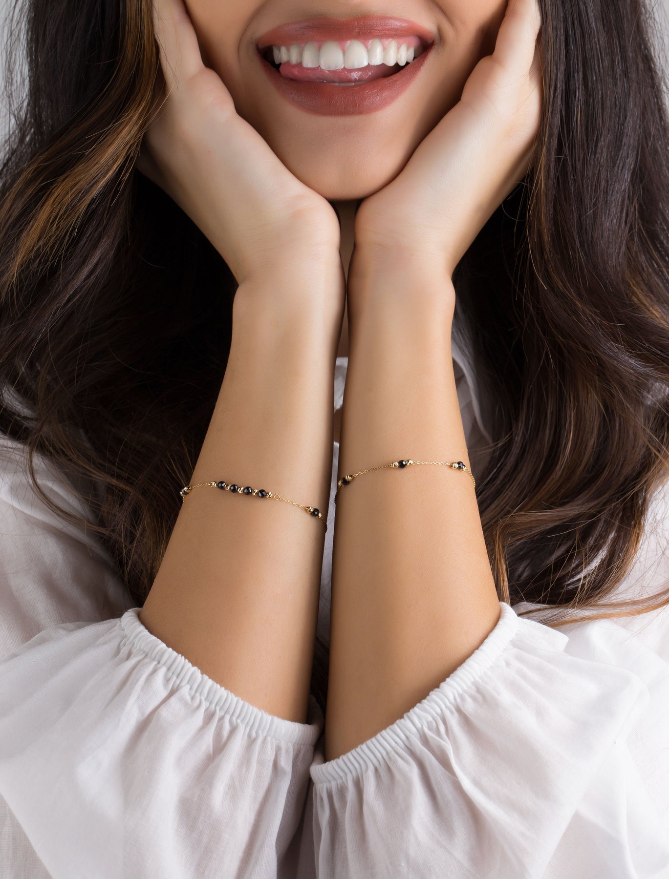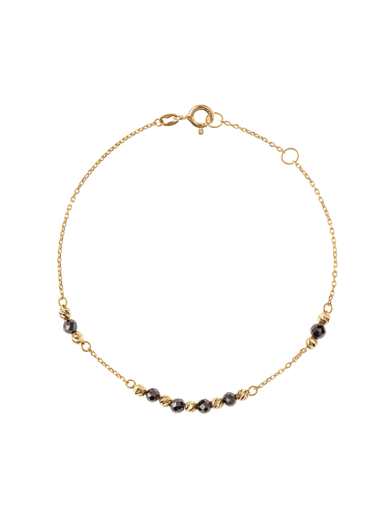 With its delicate design and splendid onyx black beads, this 18k gold bracelet is perfect for everyday wear and for stacking with other styles.(Size: 18 cm, adjustable to 16.5 cm)