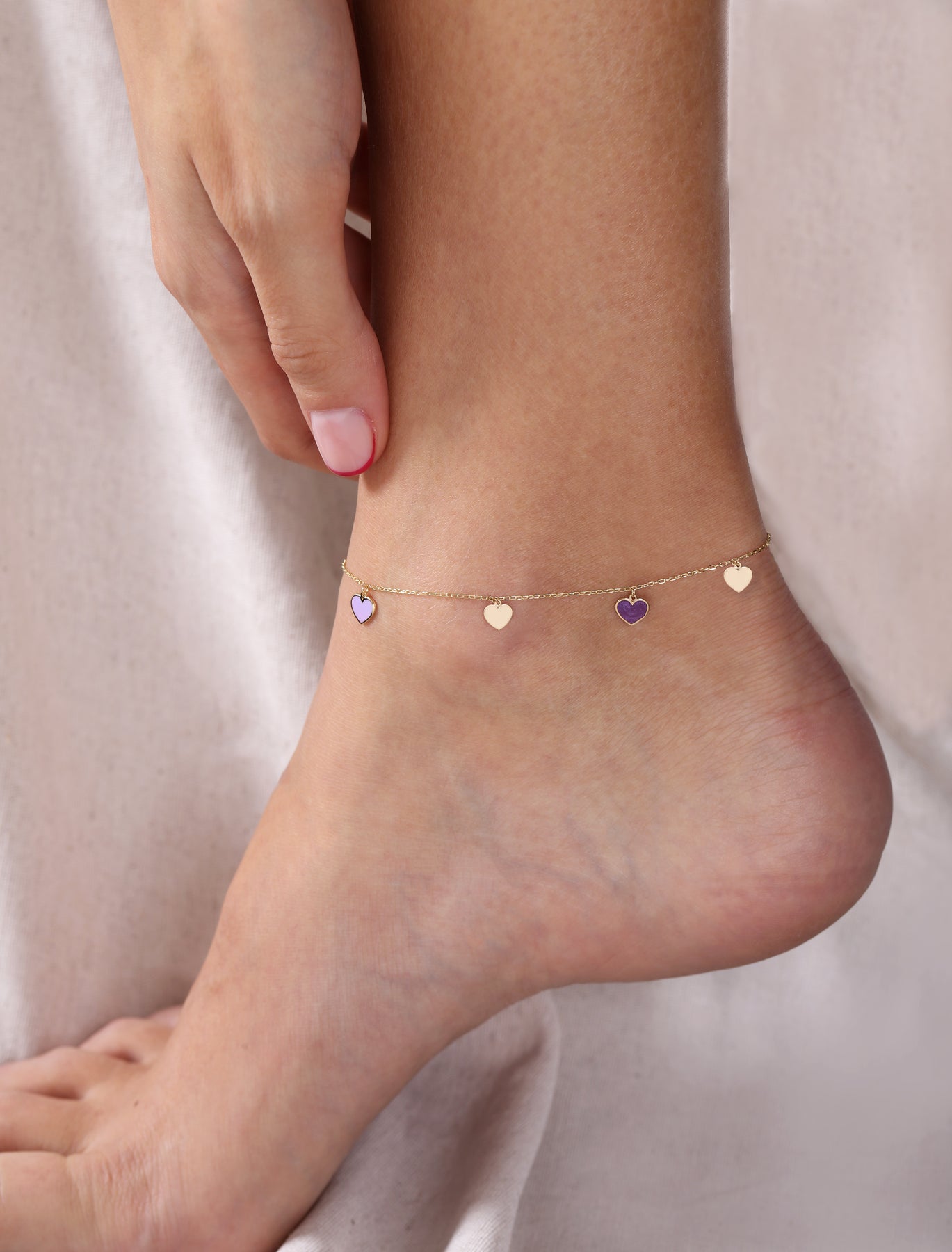 18K Gold Dangling Enamel Heart Anklet