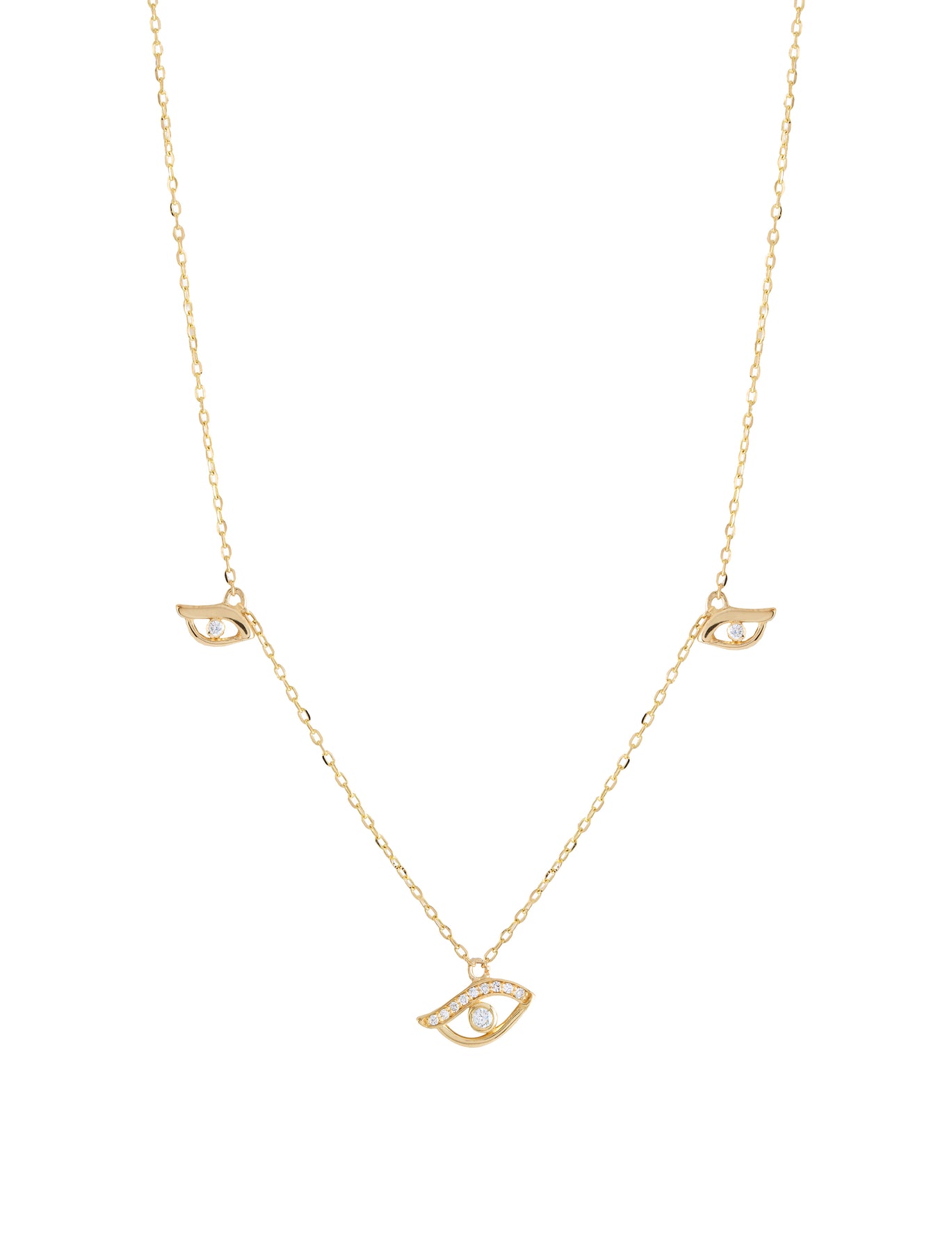 18K Gold 3 Asymmetric Evil Eyes Diamond Necklace