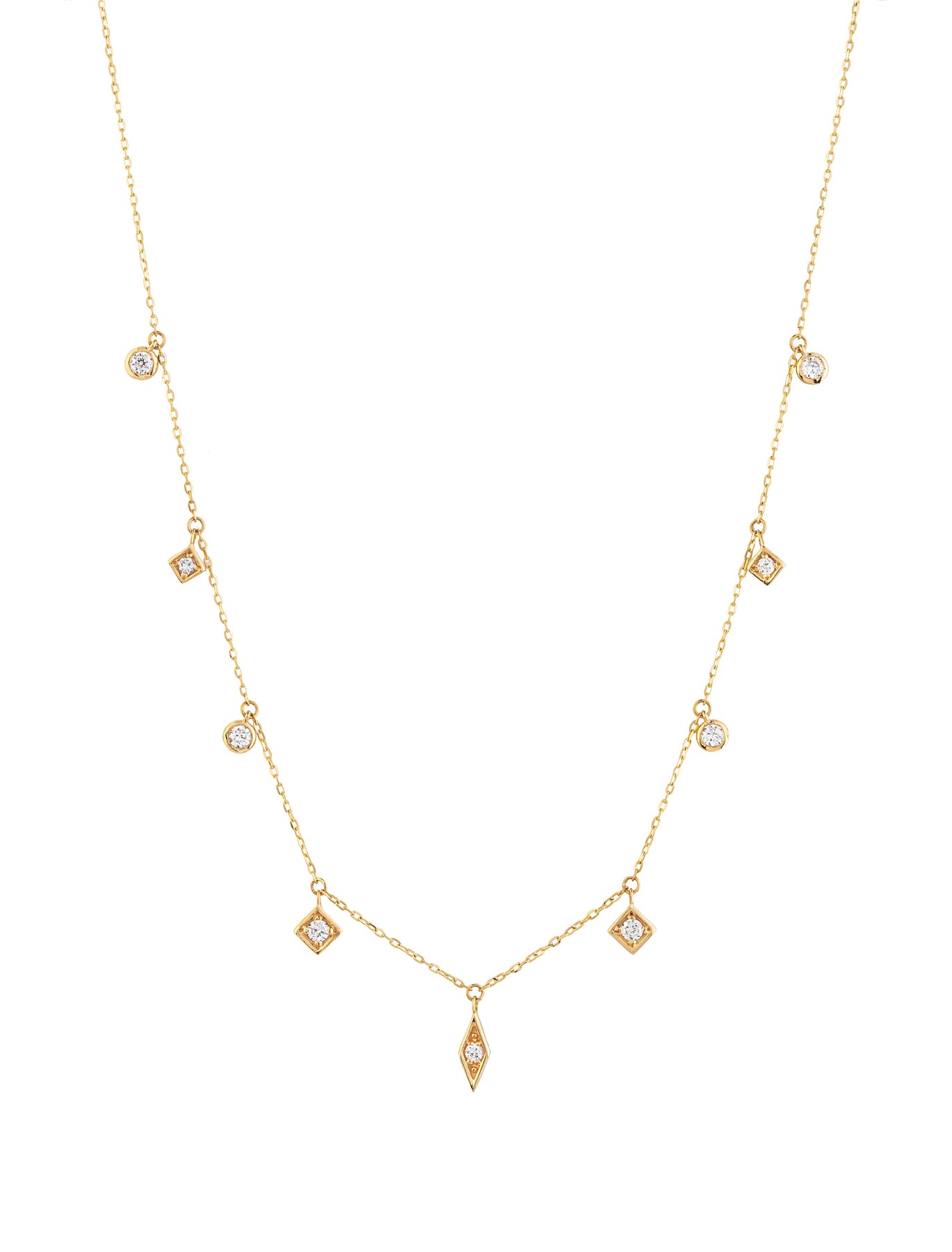 18K Gold Dangling Geometric Shapes Necklace