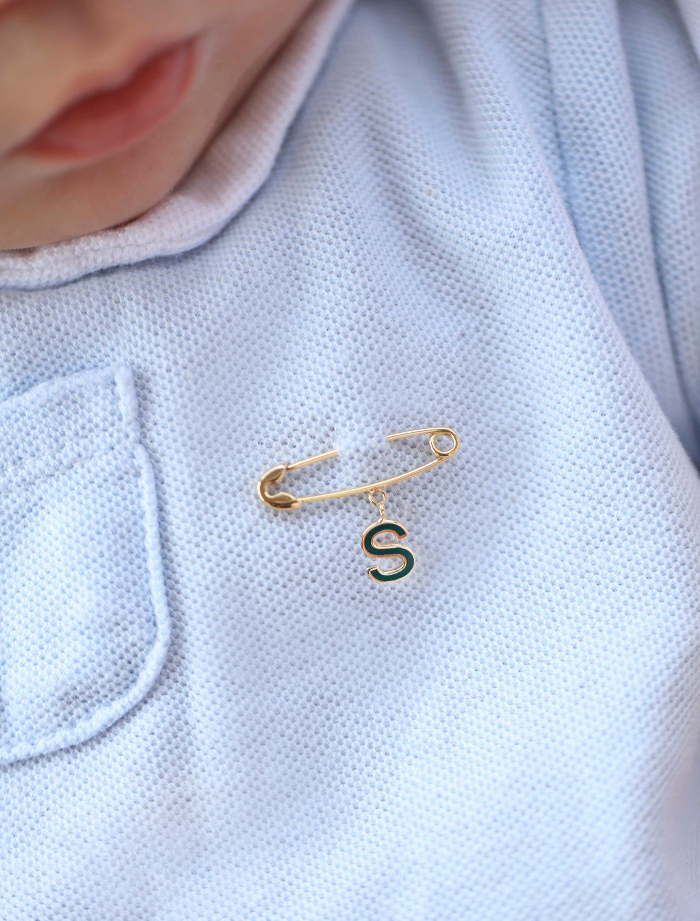 18K Gold Enamel Initial Newborn Safety Pin